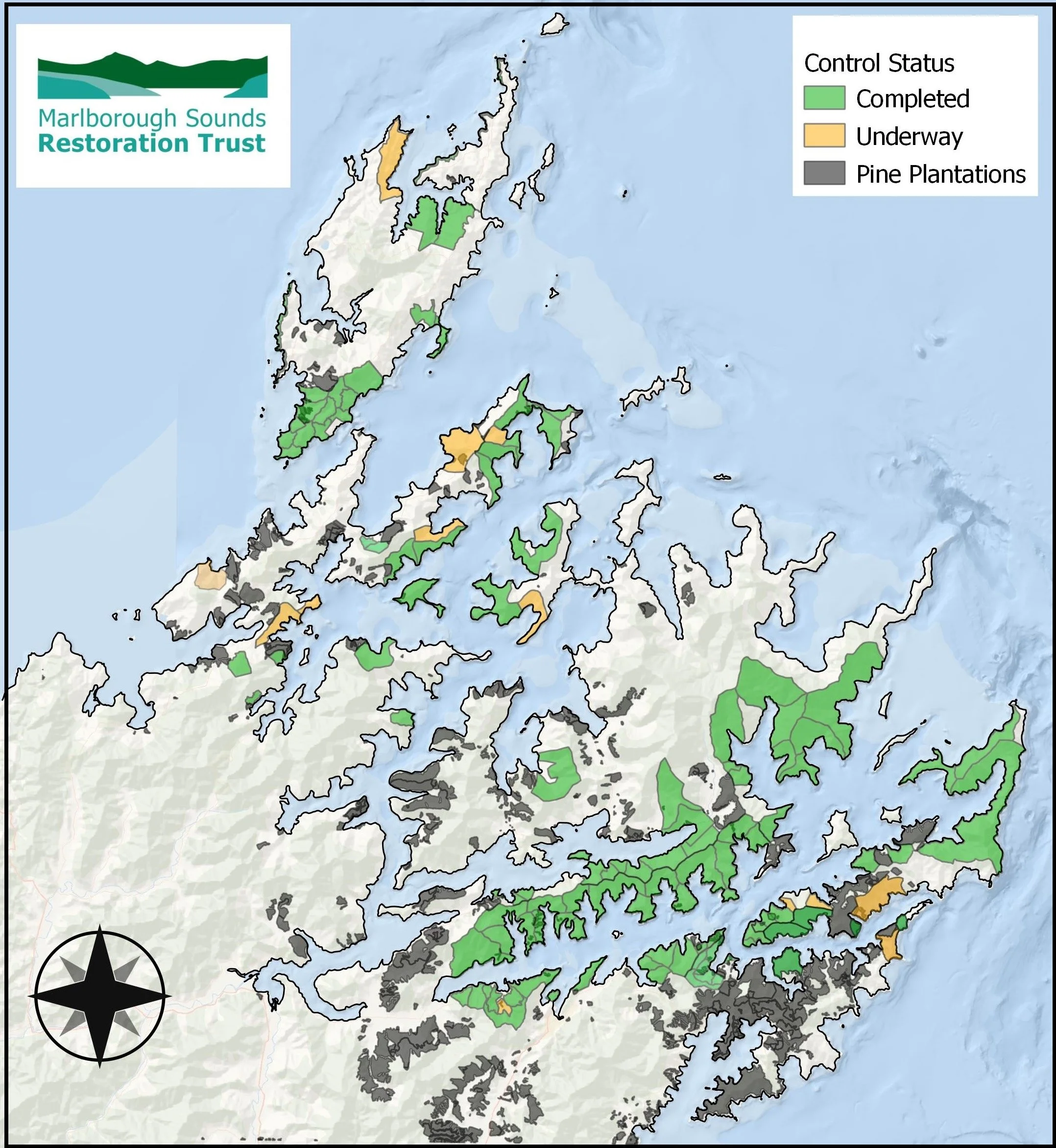 This has seen significant progress throughout Queen Charlotte Sound and Tory Channel, on D’Urville Island, the south side of Kenepuru Sound and in parts of Pelorus Sound
